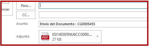4.- A continuación, se abrirá una ventana de Outlook donde podrás ver el remitente, destinatario, asunto y el archivo PDF adjunto. Desde ahí, podrás enviar el correo directamente.