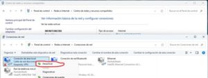 2.- Revisar si la maquina tiene internet: En ocasiones no tenemos red o no da una correcta conexión hay que revisar el cable de red esté conectado correctamente de ambos lados en la maquina y el nodo de red o también si tiene más de una conexión de red puede causar conflicto hay que desactivarla con clic derecho desactivamos.